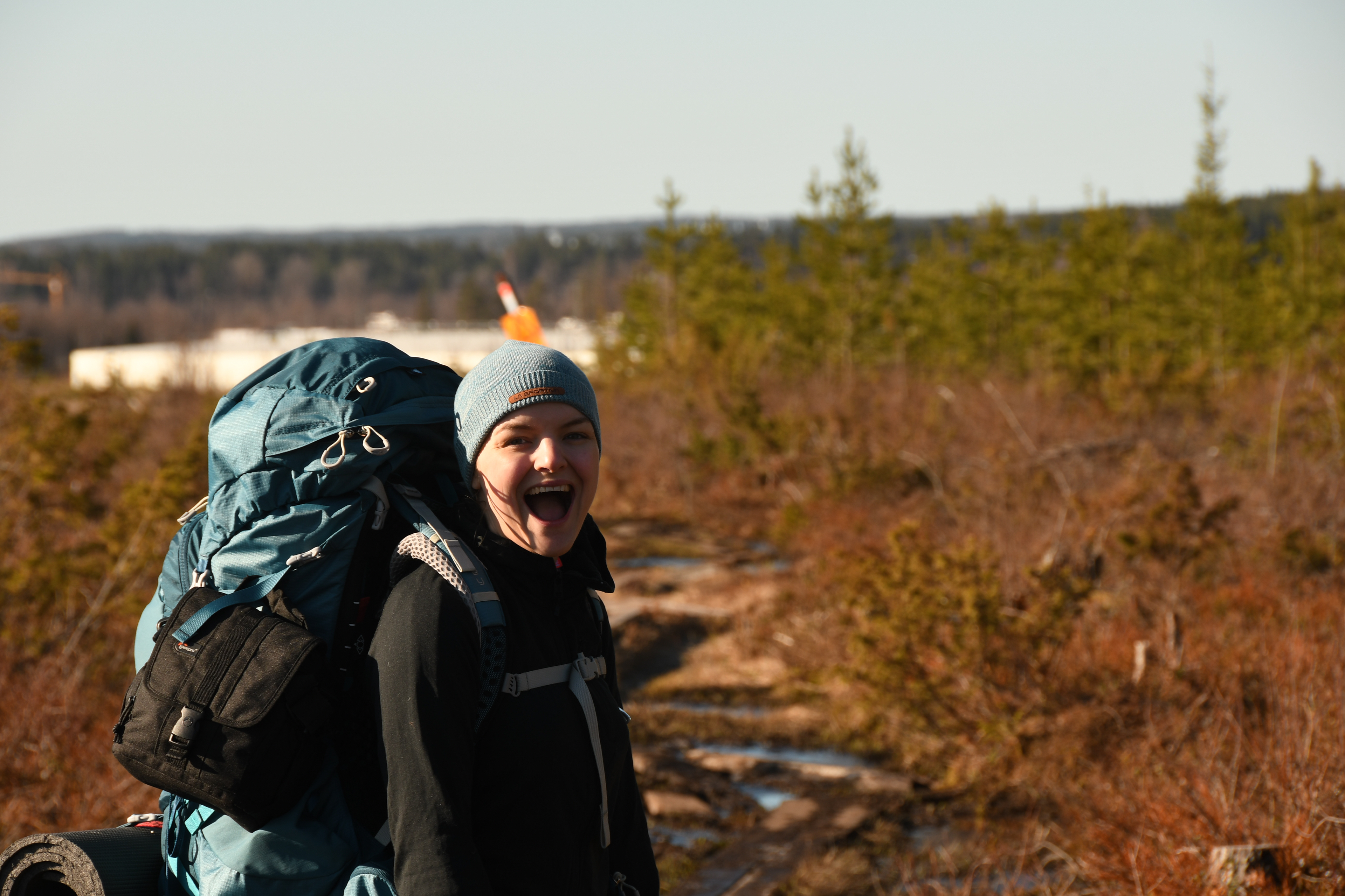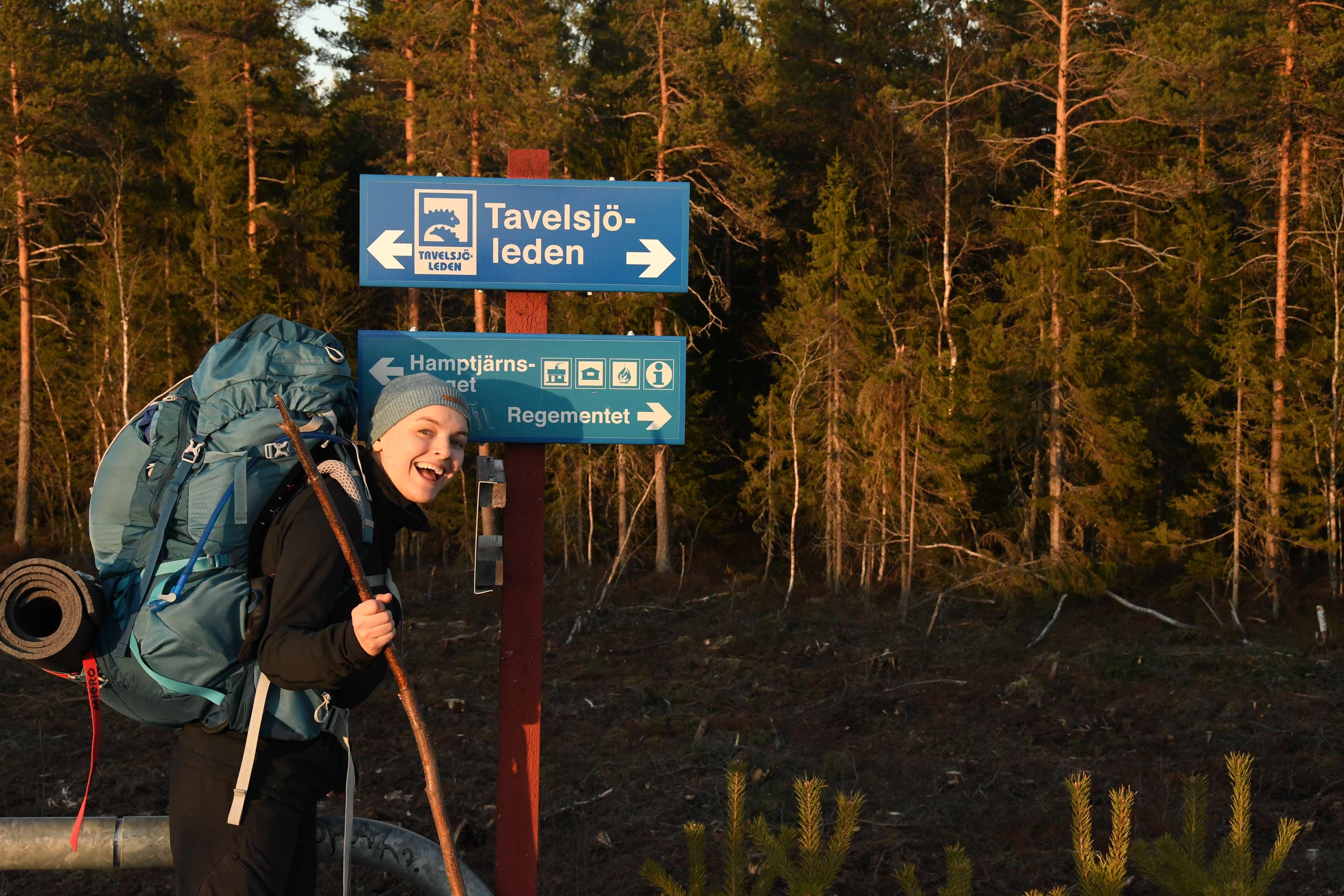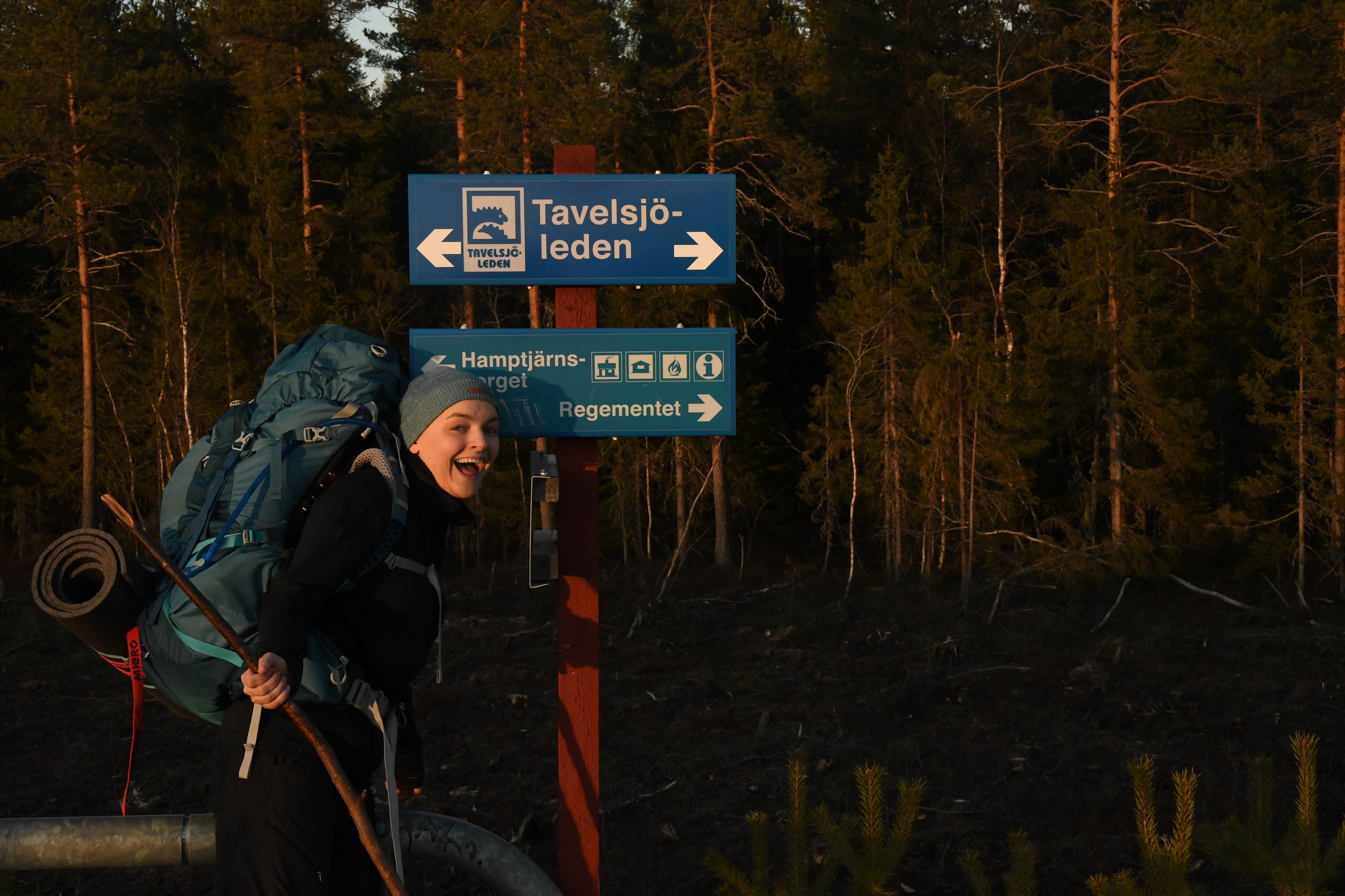 Sedan jag fick diskbråck i december har  vi talat oavbrutet om näste utomhusäventyr, speciellt när vi ska spendera årets första natt utomhus. Vi är lite begränsade när det kommer till vädret och när det är rimligt att sova utomhus. Dessutom har denna våren vart väldigt kall. Vi har varit nära flera gånger på att ge oss ut men vi har alltid funnit orsaker till att stanna hemma. Denna gång så satt vi hemma och slöglodde på TV som vi gjort de flesta kvällar under denna underliga tid vi befinner oss i. Runt klockan sju på kvällen så talade vi om hur vi drömmer om nästa fjällresa och till slut vart det för mycket. Vi bestämde oss att omedelbart packa väskorna, ringde taxi och for till Umeås regemente där tavelsjöleden. Tavelsjöleden är fyra mil lång och vi bestämde oss för att det var för mycket att ta sig ann klockan sju på kvällen så vi bestämde oss för att gå till hamptjärnsstugan som ligger fem kilometer in på tavelsjöleden, övernatta där och sedan gå hem på morgonen.