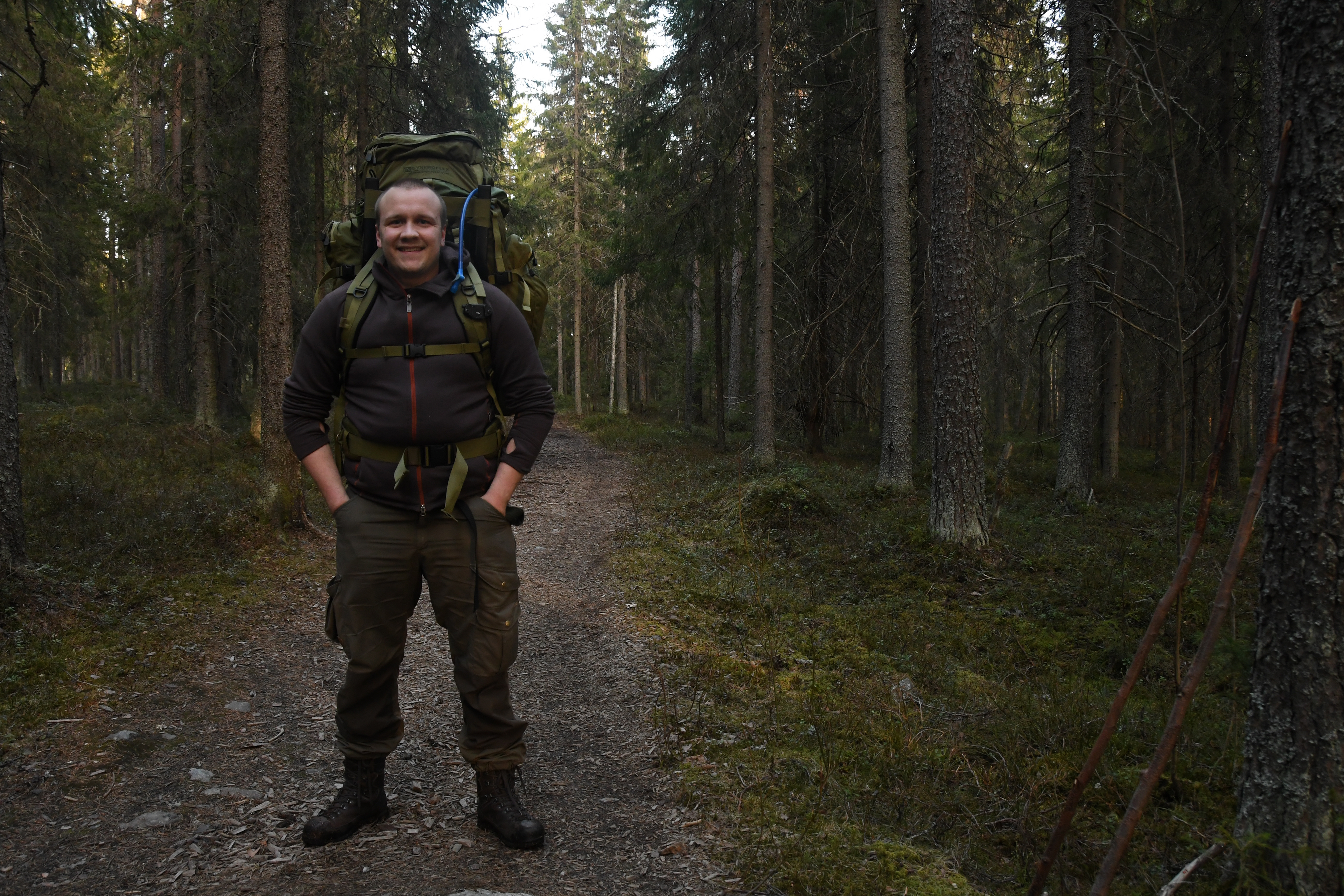 Vädret på vägen till stugan var fantastiskt. Det var klar himmel och 8 grader varmt. Trots den milda temperaturen så hade jag fullt upp att hålla koll på fötterna. Jag hade nämligen packat väskan med allt som vi behöver för kungsleden senare i år för att känna hur det skulle kännas med den vikten.  Jag kände att jag haft problem med ryggen i 5 månader om jag säger så. vi tog det lugnt, trots ömmande rygg så gjorde landskapet att det var värt var ända sekund.