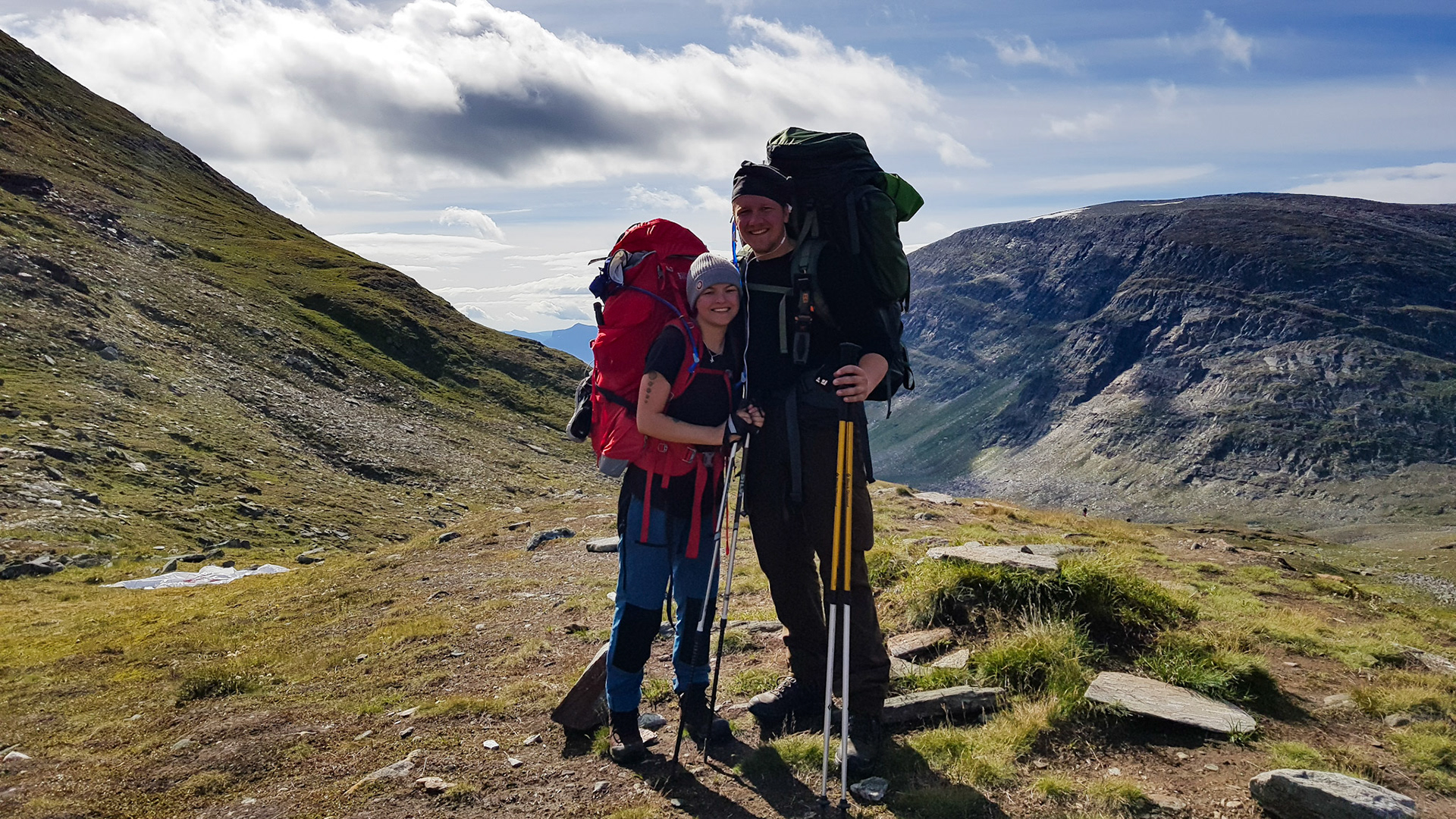 In 2018 we went on our first long hike. I have done many shorter ones but that mostley consisted of 2-3 day hikes, no we atemted a 16 day hike from Abisko - Kvikkjokk located in the Swedish Lapplands. From the very first footstep we fell in love with the nature surrounding us. I can honestly say that i did'nt even once feel like i wanted to go home rather when we finished i just wanted to keep hiking. We started early august in Abisko, the first two days he body had to climetize to the everyday walking but after that is was simply amazin. We did'nt sleep once in the avalible huts along the way, we slept in our tent every night. For those who havn't tried it, its the best night sleep i ever had. we slept about 10 hours every night to the sound of a light breeze and drizzling water exept for that one day when we had winds blowing up to 30m/s but that was an experience too. Kungsleden offers fantastic tent spot through out the trail just at arm-length. But the best part of hiking in the Swedish Lappland is the water, THE WATER!!! All of the water in motion is drinkeble without a filter. The water is also almost always near you so you dont have to carry that heavy water that you usaually do. The cold glaciar water direct from the stream makes the fountain of youth seem like sewage. Its perfect! Most of the huts offers a small shop and sauna where you can remedy your feet and enjoy a light beer in the cool nothern, gazzing in the sun. We had 8 perfect days and 6 where it rained on and off. The northern weather is very changeble so keep that in mind when hiking high up north. We met with my mum and my uncle at Saltoluokta for the last four days of hiking. But unfortunetley my moms feet broke down and my uncle strted having problems with his hips. So we took a helicoter from Atse to Kvikkjokk and on the wayto the chopper i sparained my ancle really bad. Like my grandfather says "you cant be lucky every time". However having my girlfrind, mom and uncle there with us made me forget all about it, we laughed it all away and got an awsome helicopterride with our dog. Sounds like a pretty awsome trip to me!